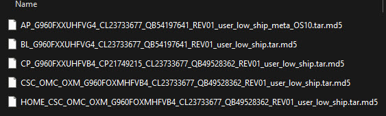 The downloaded zip will contain a list of files which we'll then use to flash our Samsung S9 phone.