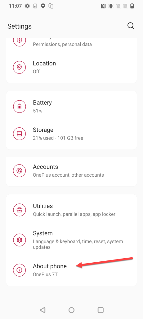 field several times. Note that this process may vary depending on your phone model or Android version. Below are some example screenshots from the OnePlus 7T.