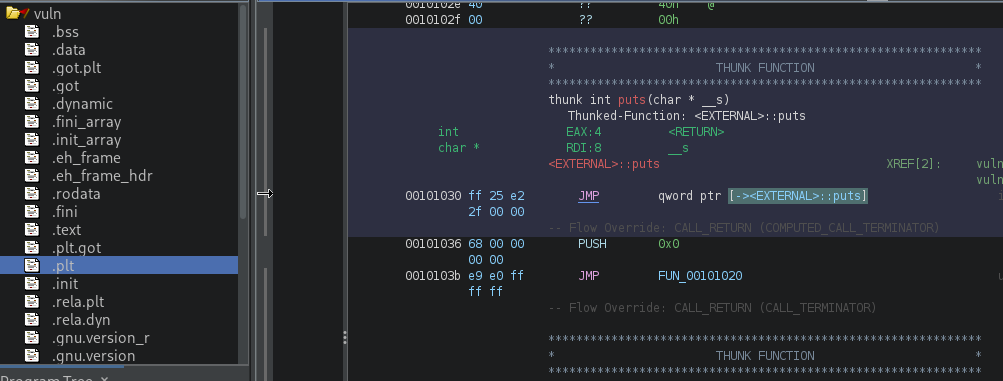 [#0] Id 1, Name: "vuln", stopped 0x556c9e8591e7 in vuln (), reason: BREAKPOINT