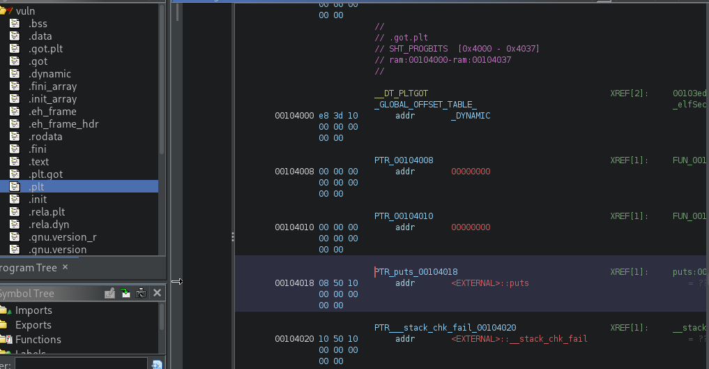 So, what does this mean in practice? Well, given that our binary is both pie executable, and dynamically linked, basically none of the addresses we have been gathering through the static analysis are the actual addresses, instead, they are just offsets to a randomized base address.
